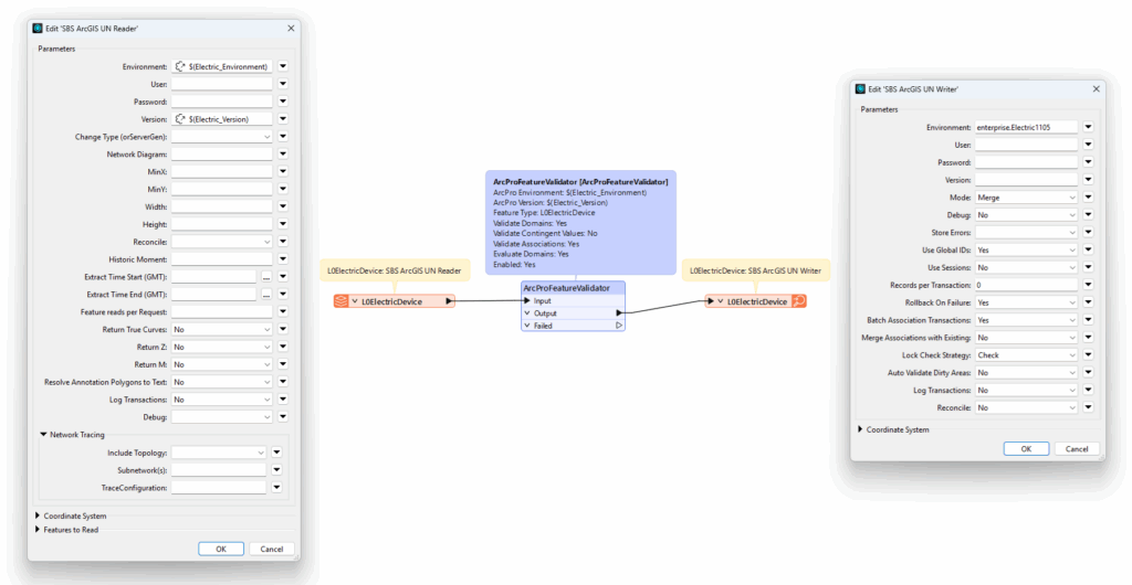 To simplify complex interactions, the plugin includes custom FME Transformers that extend standard ArcGIS functionality. These transformers are designed specifically for synchronized updates and Utility Network-aware processing, reducing the need for brittle custom scripting.