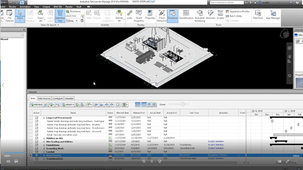The example below shows a visualization of the construction process by viewing the 3D model in conjunction with Primavera project management software. The visualization is being hosted by Autodesk Navisworks.