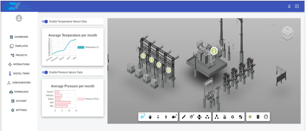 The digital twin models created during design can also be extended to view the status of the extensive amount of Internet of Things (IoT) sensors that are now populating the electrical smart grid. The example below is a prototype developed by SBS with a leading U.S. utility to create a way of easily visualizing asset performance. This was accomplished by synthesizing the tremendous amount of substation sensor data that is created every day into an actionable user interface. The 3D, intelligent design model can be readily imported into web-based visualization platforms—in this case, Autodesk Forge.